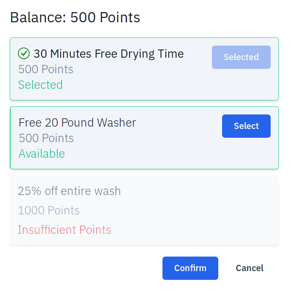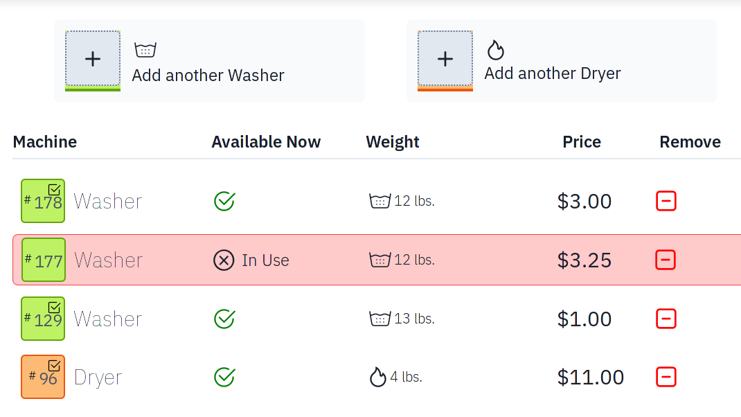 Real-time busy and price updates from each machine. An interface crafted for all customers. English and Spanish. Multi-start.